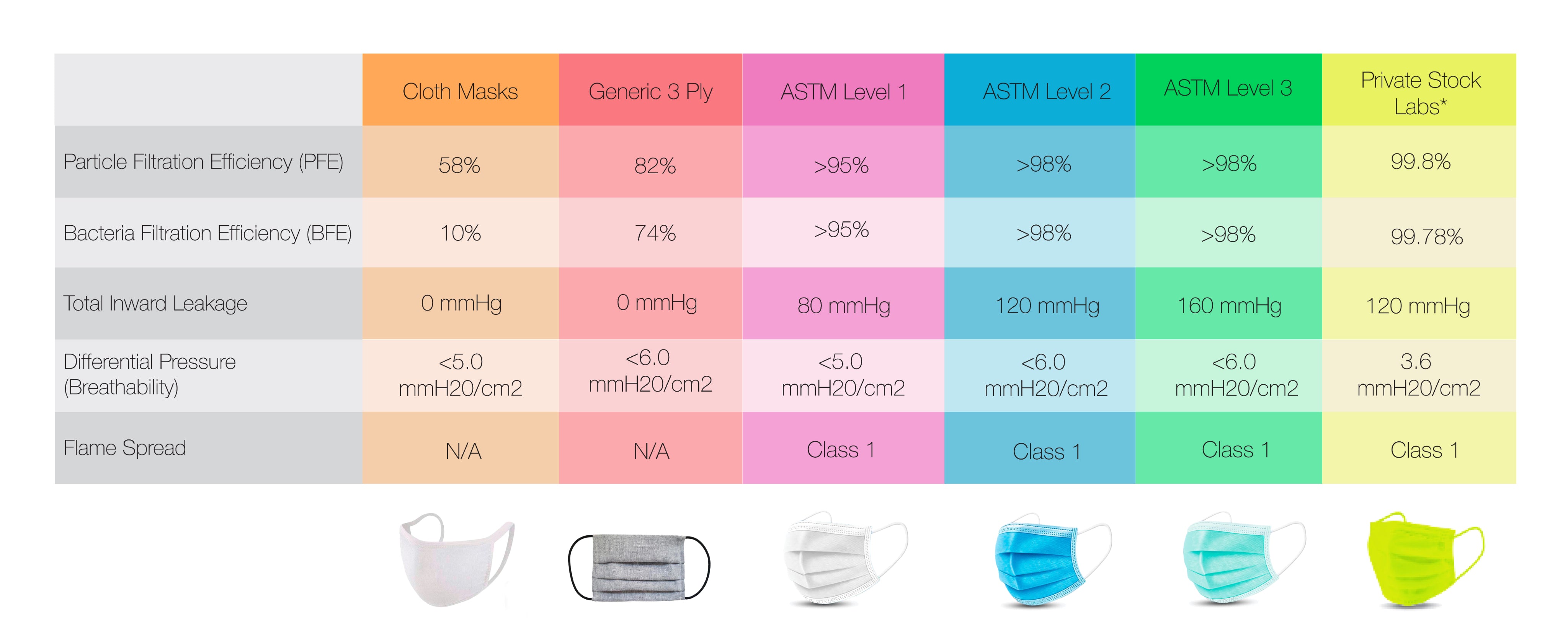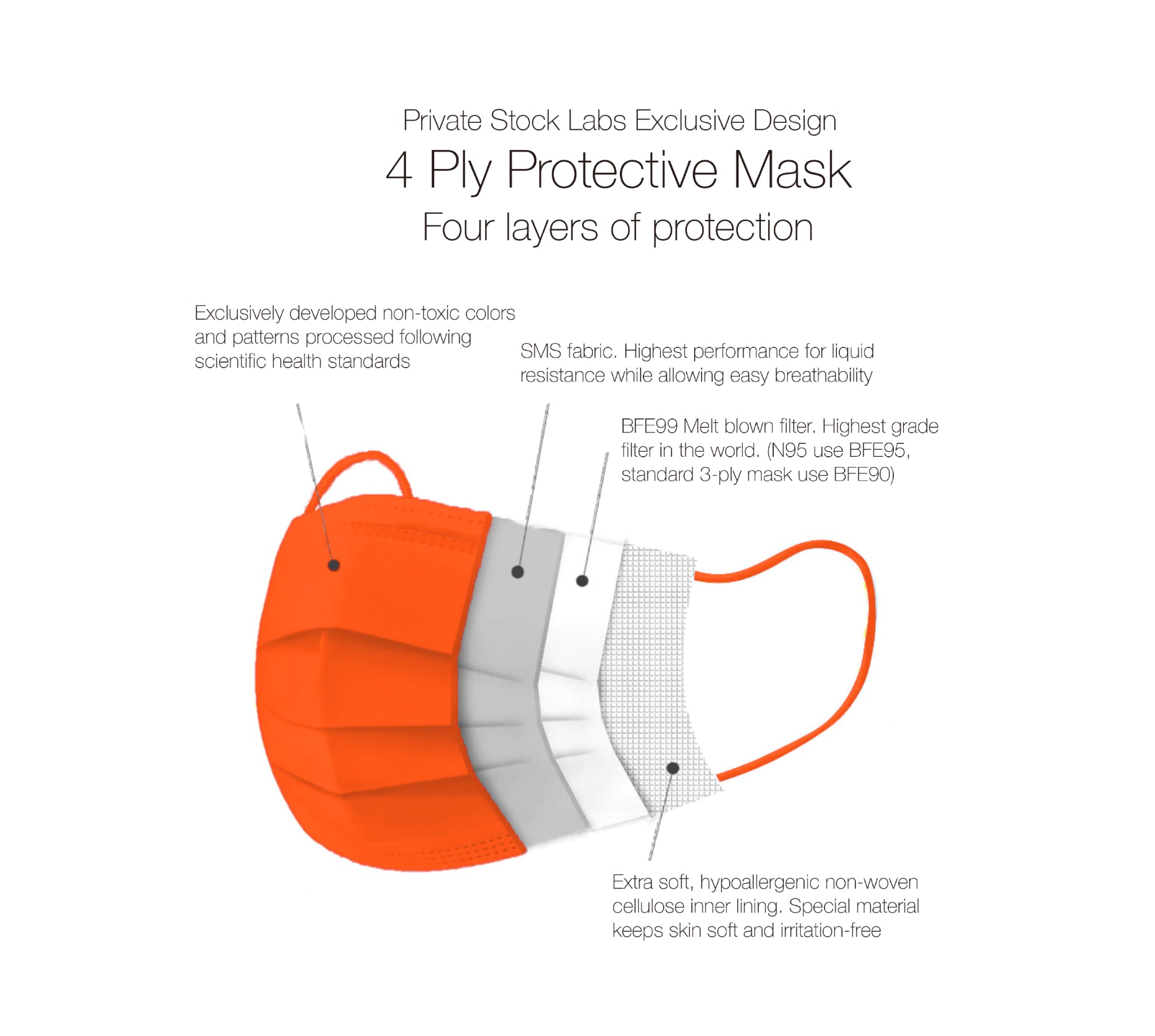 “Private Stock Labs” branding is ultrasonic welded onto each mask. No chemical prints are used.