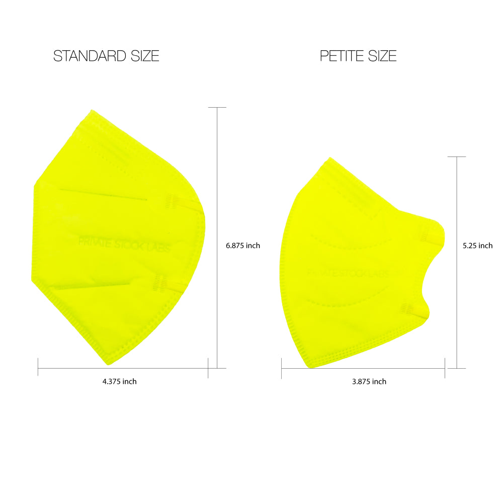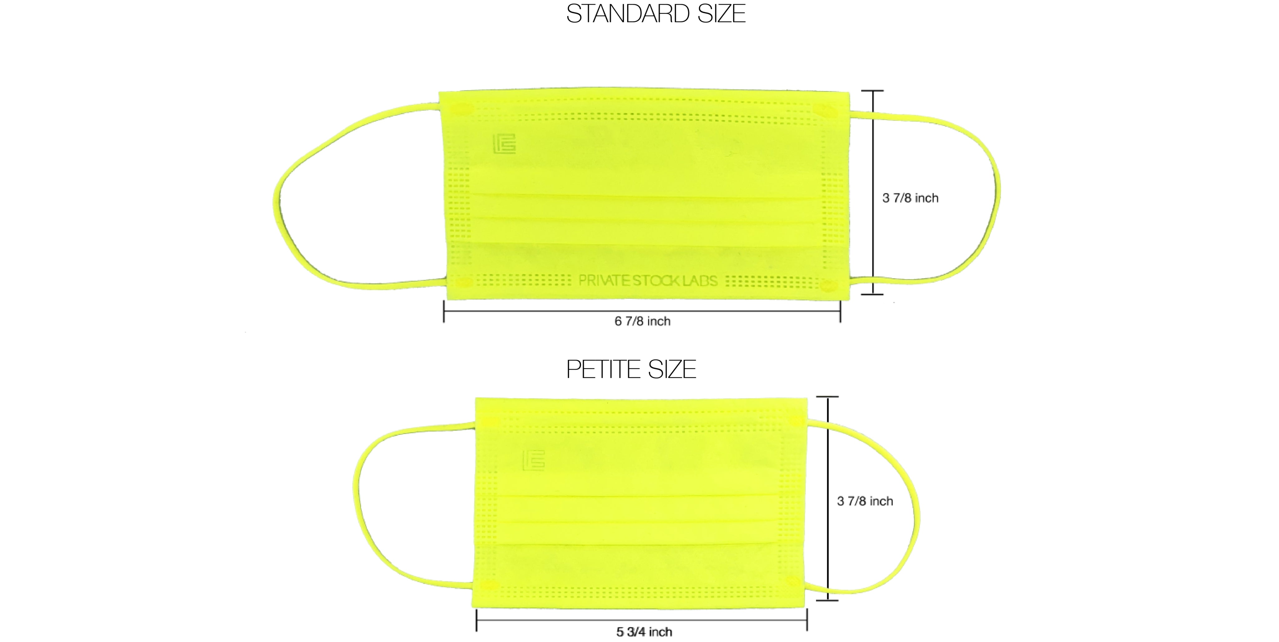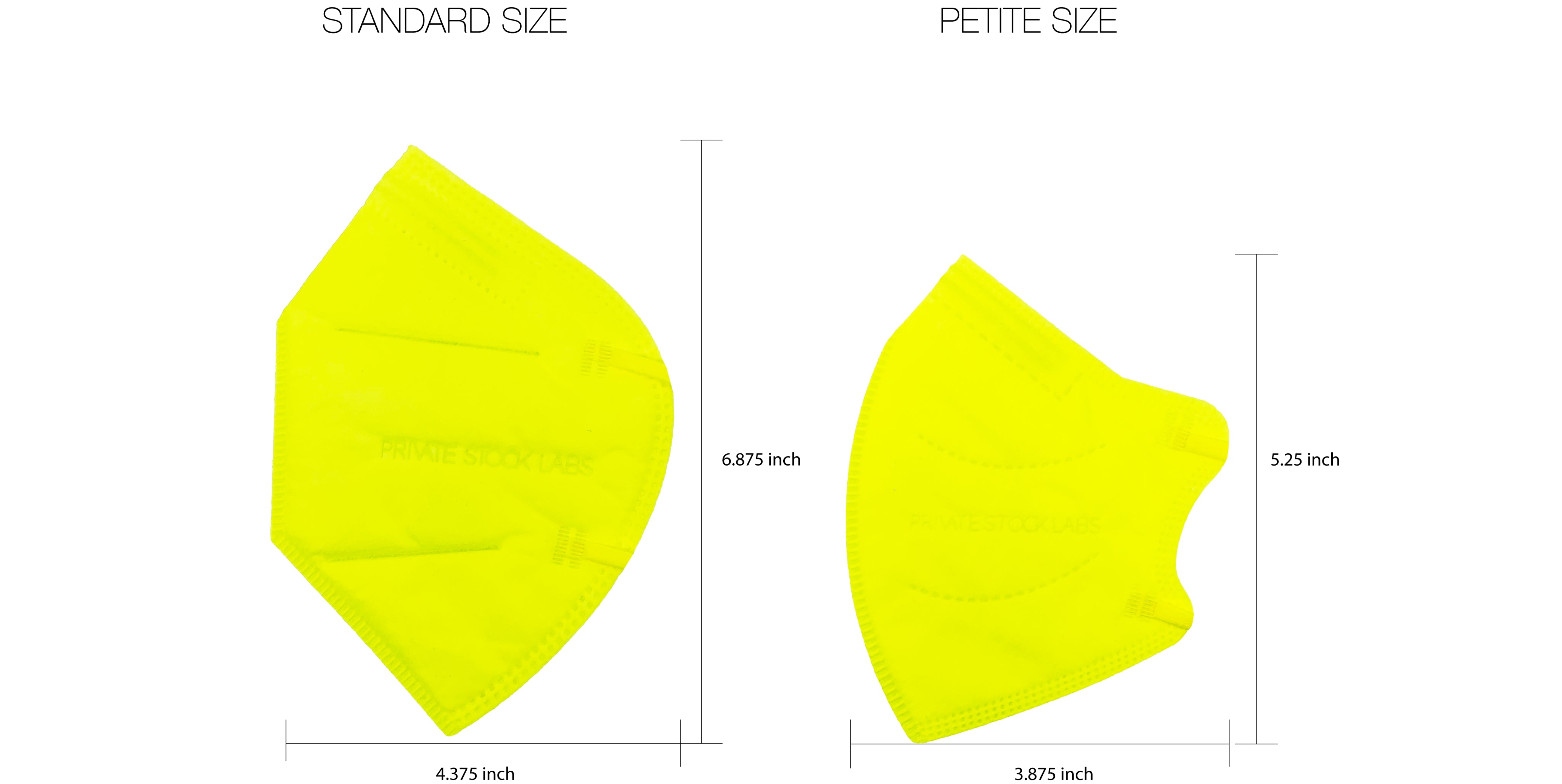 Private Stock Labs KN95 masks are made following the global standard for KN95/N95 mask size. Our Petite KN95 is specially designed to fit Women (including children 8 years old and up).